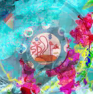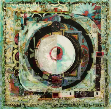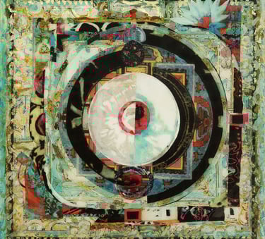 In 2011, one day in Bali, on the beach, I sat under a palm tree, playing with my iPhone. That day, I discovered a way to create digital collages or magic mandalas, using iPhone apps.